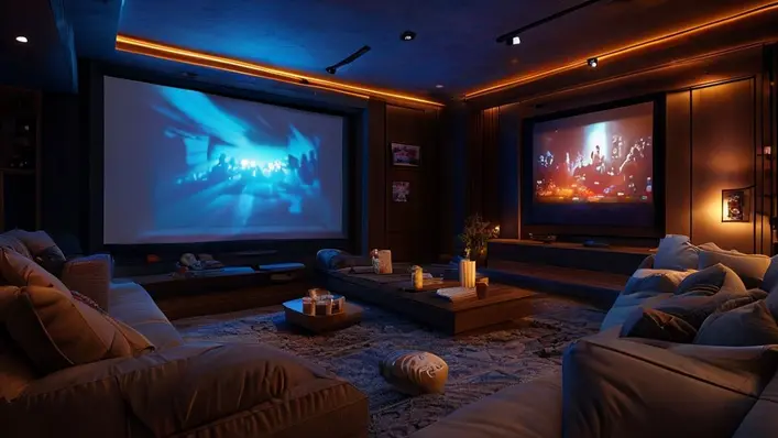 • Controle a luz ambiente: fechar cortinas, apagar luzes diretas e usar luminárias indiretas já aumenta a sensação de cinema.